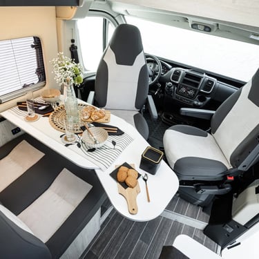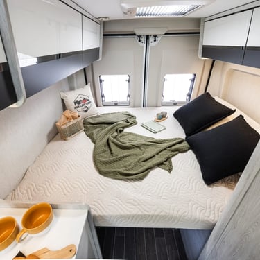 Ideală pentru cei care caută un vehicul sub 6 metri, cu două paturi mereu disponibile. Cu pat dublu spate și capacitate mare de depozitare.
