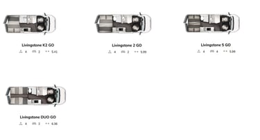 Pentru prima vacanță într-o dubă, gama Livingstone oferă modele cu un stil esențial, dar cu soluții versatile și funcționale, așa cum doar cei care construiesc exclusiv dube pot face. Alegeți dintre 5 modele cu lungimi cuprinse între 5,41 m și 6,36 m și 3 tipuri de pat, inclusiv paturi duble clasice, paturi suprapuse duble și paturi twin.