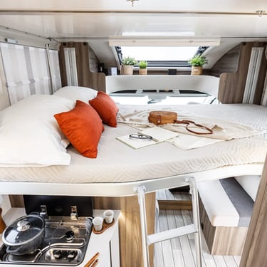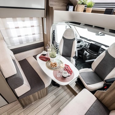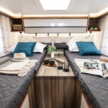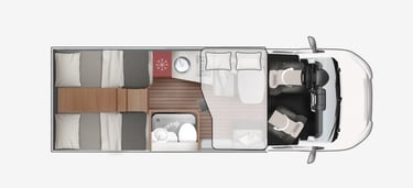 Kronos 285 TL - Profilul redus ideal pentru familia care caută spațiu și spațiu de depozitare. Cu paturi twin în spate care pot fi transformate într-un pat dublu maxi și toaletă cu volum variabil.