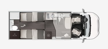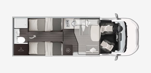 Zefiro 282TL - pentru familia care caută spațiu și spațiu de depozitare. Cu paturi twin în spate și zonă independentă pentru toaletă/duș.
